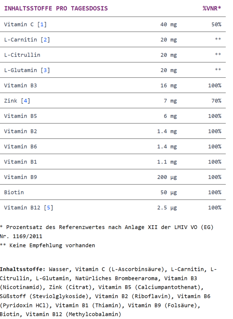 Die enthaltenen Nährstoffe wie L-Carnitin, Vitamin B12, Zink und L-Glutamin sind gut erforscht und häufig in Nahrungsergänzungsmitteln verwendet.